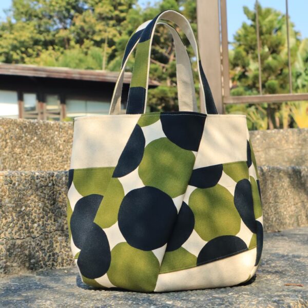 棉布材質的手作包,適合放進錢包、鑰匙及手機即可出門的簡便手提包。