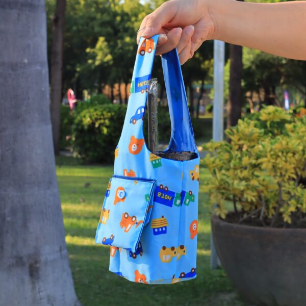 人手一杯的手搖飲裝進袋子輕鬆解放雙手,青田的環保杯袋可以摺疊成小巧的方型,容易收納的大小適合放入各種小包包